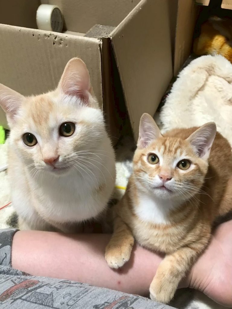 もともと野良猫だったランちゃんとポンポン。