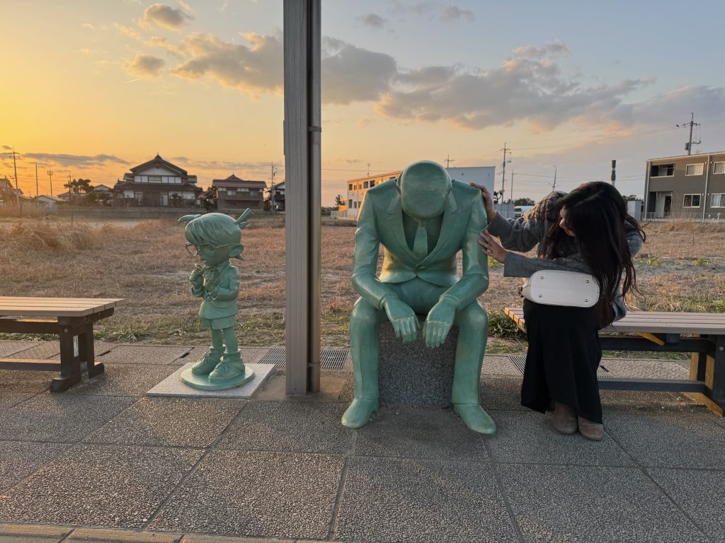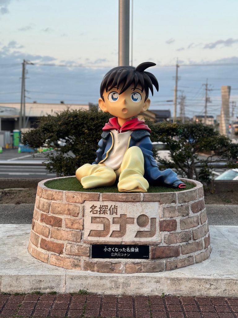 最後は駅でコナンくんと決めポーズで記念撮影。