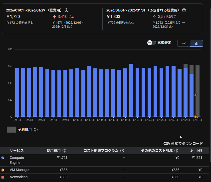 無料枠をちゃんと調べずにサーバを立ててました。